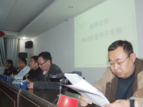 2010年12月9日,公司在物貿(mào)會(huì)議室召開(kāi)本年度中層干部測(cè)評(píng)會(huì)。會(huì)議由監(jiān)事會(huì)主席姬中勝主持,物資局政工科科長(zhǎng)金靜蒞臨指導(dǎo)。