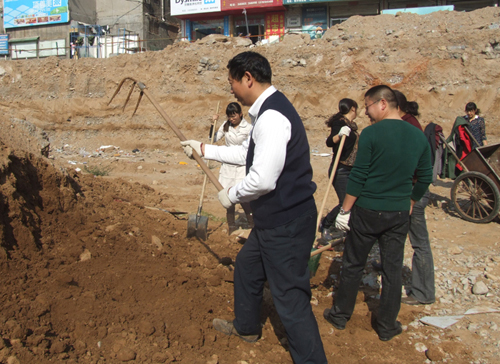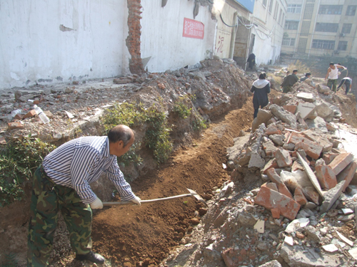 由于天氣逐漸降溫,為防止物資城東區(qū)施工工地的水管管道凍裂,11月1日公司副總經(jīng)理原躍作帶領(lǐng)物資城全體員工對(duì)暴露在外的管道進(jìn)行回填土方勞動(dòng)。